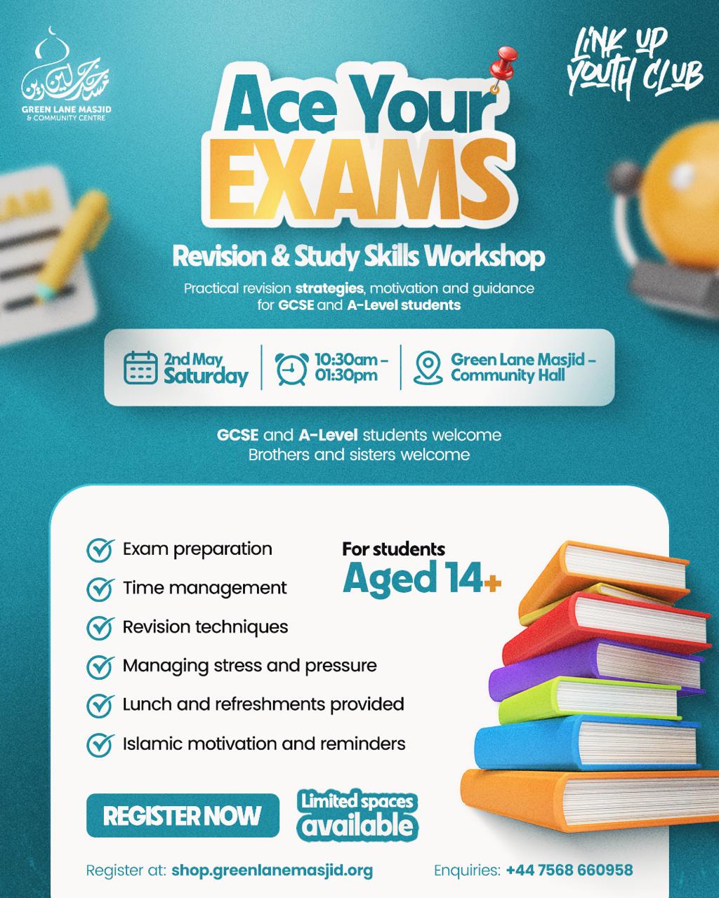 As exam season approaches, this session will help students improve their revision habits, strengthen their study techniques and approach exams with greater focus and confidence. Alongside practical advice on exam preparation, time management and managing stress, students will also benefit from Islamic reminders on striving for excellence and making the most of their opportunities.